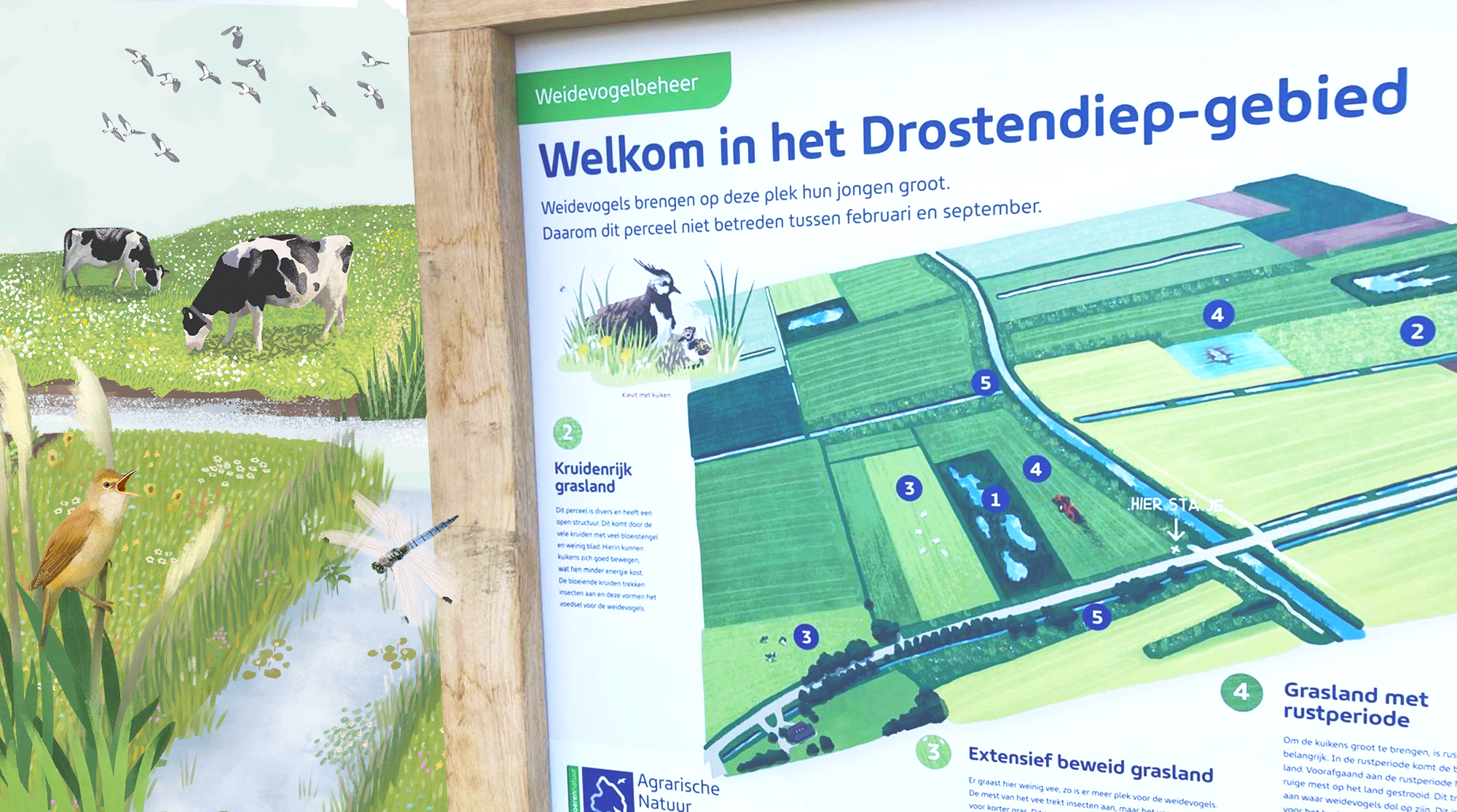 Drentse boeren werken samen aan een toekomstbestendige landbouw – met meer biodiversiteit, schoner water en natuurvriendelijkere processen. In opdracht van Agrarisch natuur Drenthe ontwierp ik een hele vlucht aan flora-, fauna- en landschapsillustraties te zien op informatieborden verspreid door Drenthe en op de website. Met het doel om voorbijgangers te informeren en the enthousiasmeren over de natuurmaatregelen in het gebied.
